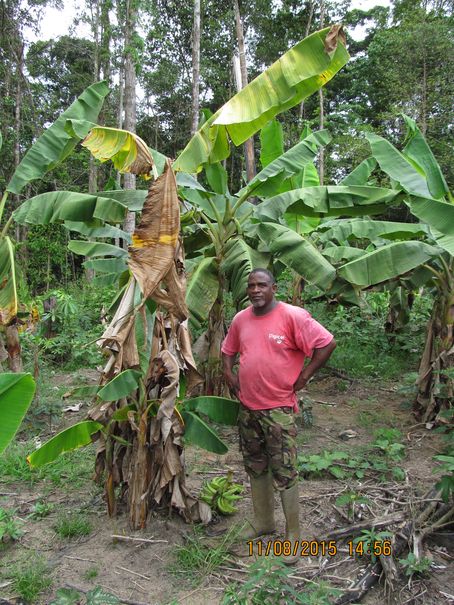 ![]() La progression de la maladie se fait "en taches" sur le terrain. Nous pouvons l'observer sur cette petite zone où tout a disparu ; les jeunes pousses de bananier sont encore présentes noircies. L'analyse biologique de fragments de tige présentant des lignes noircies ne nous a pas été possible, par faute d'équipements. Nous aurions pu tenter de contrôler la présence des bactéries dans le sol, en pratiquant des cultures de tomates sur des échantillons prélevés au pied de plants dépérissants. La pénurie de semis de tomate (plante également sensible à la bactérie Ralstonia n'en pas permis l'initiative. The Causal Agent Moko disease is caused by the bacterium Ralstonia solanacearum (Yabuuchi, Kosako et al. 1995). Initially when it was identified by Rorer in 1911 he named the causal agent Bacillus musae however after the bacterium was shown to cause symptoms on solanaceous plants it was reclassified as B. solanacearum (Ashby 1926). This group has now been renamed Ralstonia solanacearum. The bacterium is described as an aerobic, gram-negative, non-fluorescent rod belonging to the rRNA homology group II (Palleroni 1984). Des mises au point récentes, publiées en français sont sur Parmi les articles de cette revue, La revue Internationale sur Bananiers Plantains. Ralstonia solanacearum en cause retour en haut de la page Kourou , le 9 août 2015 |