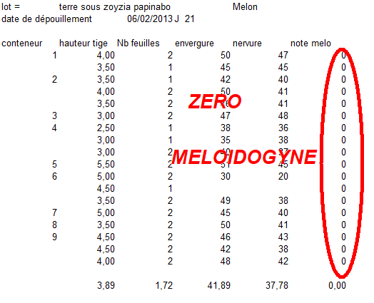 La confrontation des deux tableaux nous montre une qualité de l'échantillon de sol sous zozia, remarquablement intéressante. Il n'y a aucune trace de Meloidogyne.