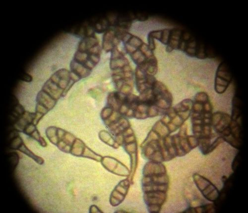 résidus obtenus sur bande adhésive révèle la présence de conidies caractéritiques
