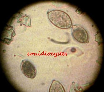 issues d'espèces de vésicules, les conidiocystes. Ces planoconidies nagent à la