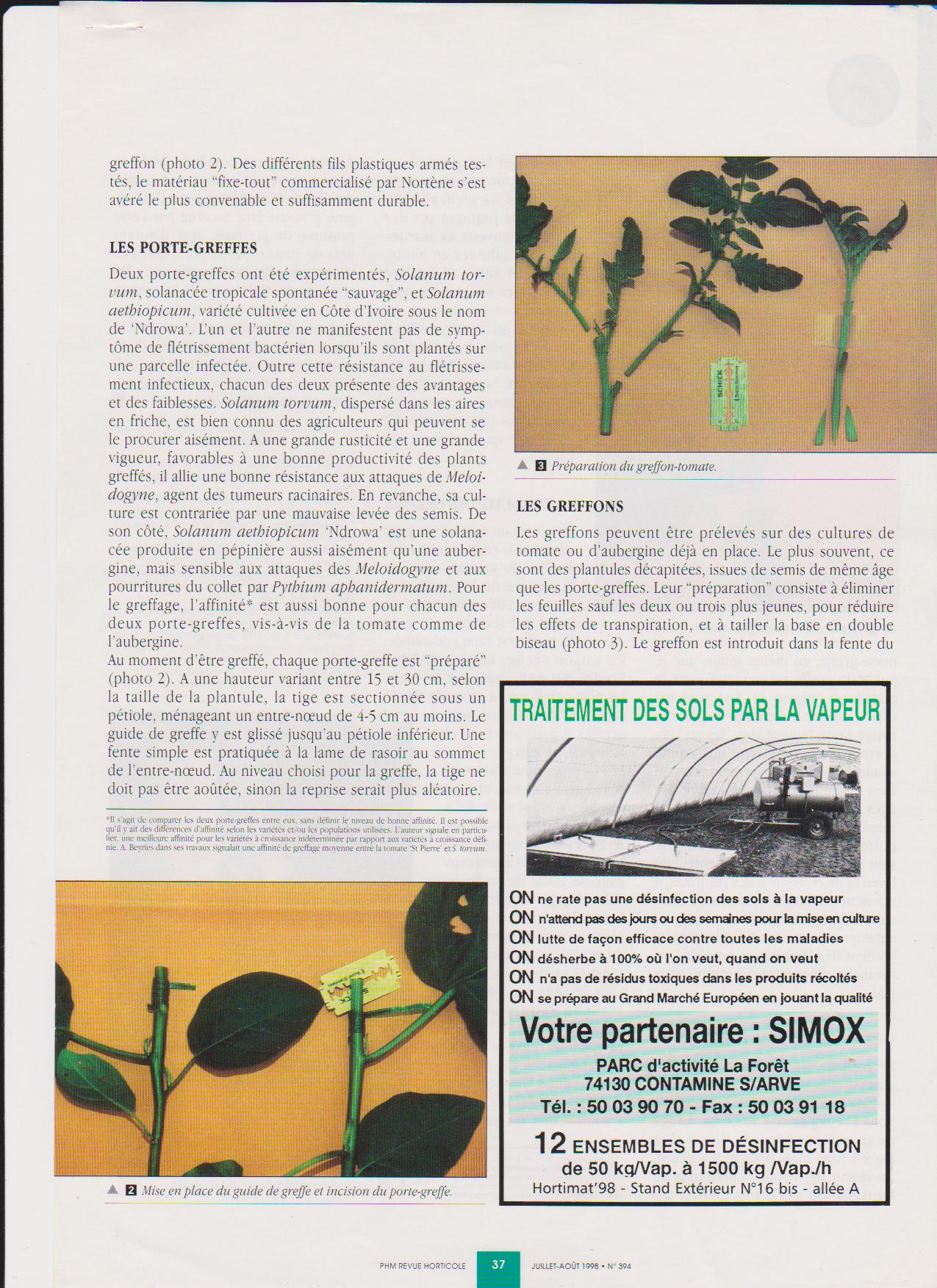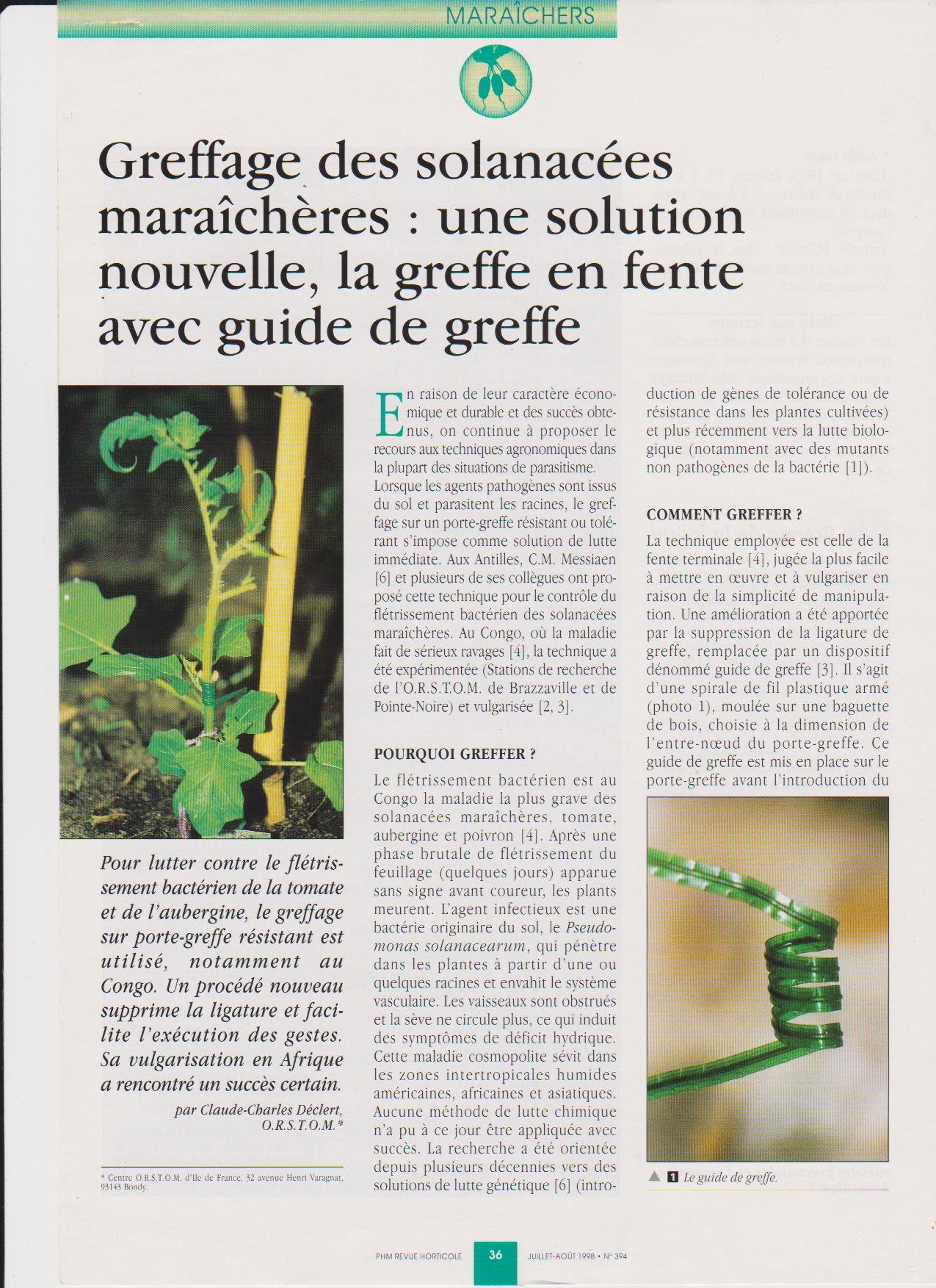 Greffage des solanacées maraîchères , aubergine et tomate.