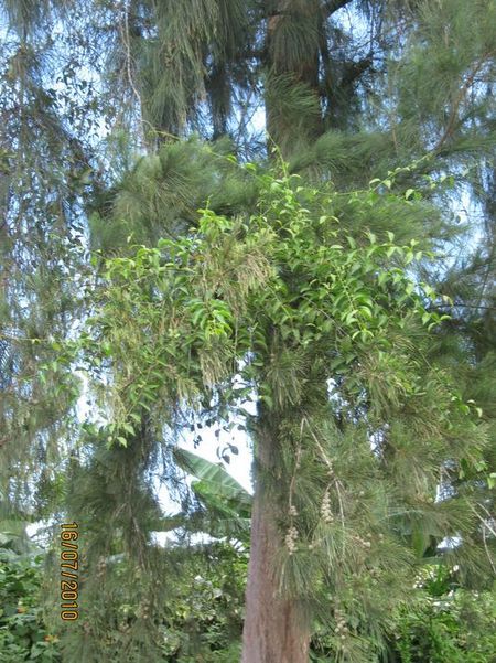 En ce printemps 2011, un spectacle de désolation s'offrait aux yeux des visiteurs de l'avenue de France à Kourou : le majestueux alignement des filaos (Casuarina equisetifolia L.) a disparu, seuls quelques rescapés témoignent de la sévérité de la peste qui a décimé ces arbres. Les arbres ont été victimes d'une plante parasite, communément appelée "gui", par analogie à celle qui sévit dans nos régions tempérées sur beaucoup de pommiers ou peupliers.