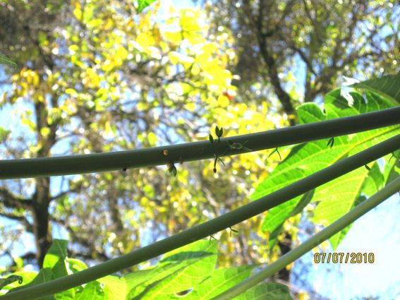 Il nous a été donné de constater une réaction d'autodéfense du papayer contre le gui, à l'occasion d'une observation sur papayer au voisinage des immeubles de Simarouba.