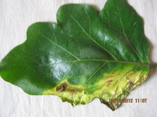 Des premières aires nécrotiques apparaissent sur les feuilles âgées et ceci sur une partie