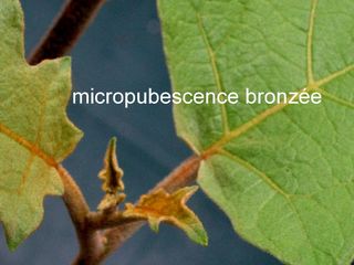 principale, et de la zone du mimbe proche, coloration dûe à une pubescence pigmentée; ce caractère est spécifique des