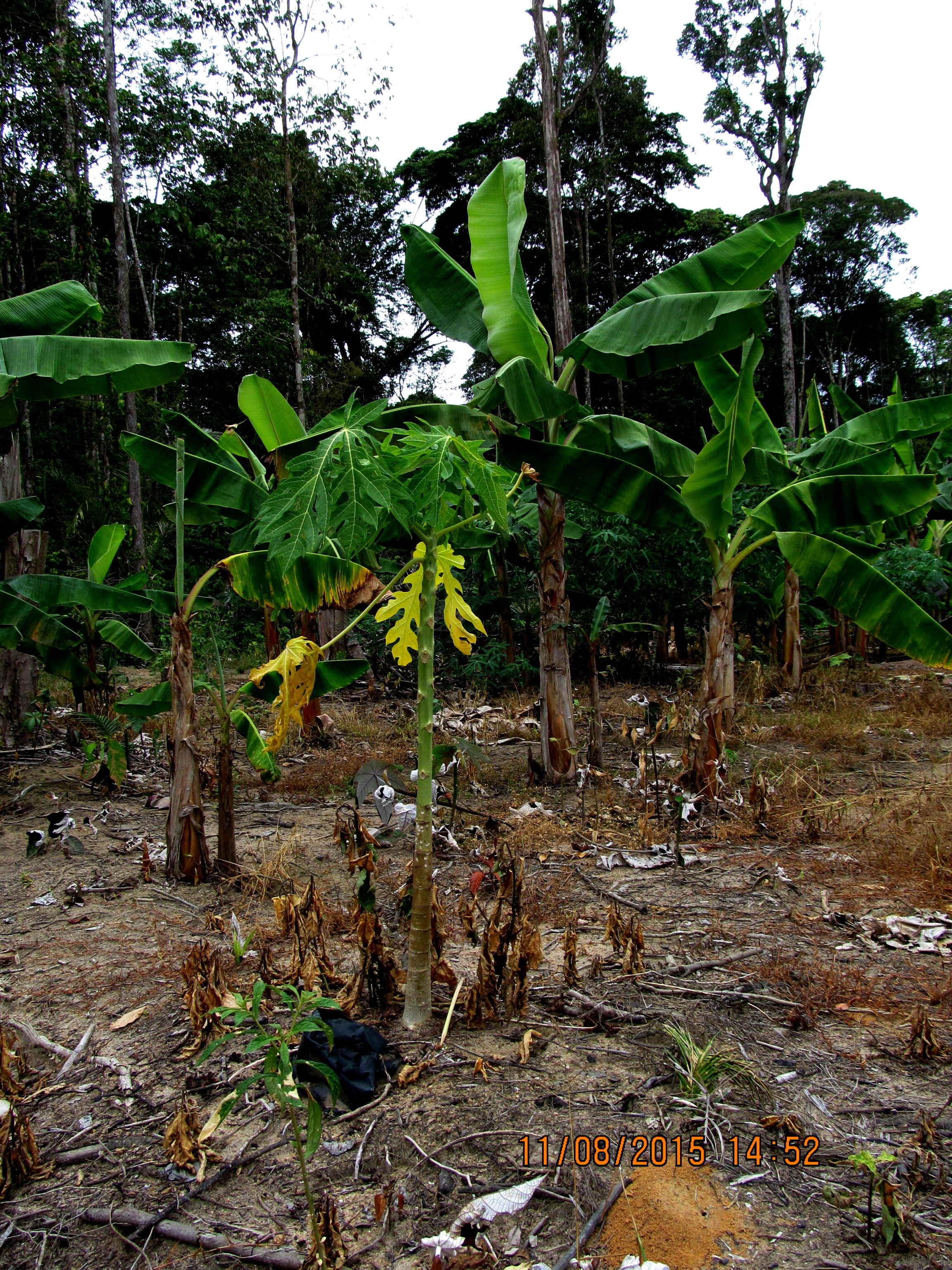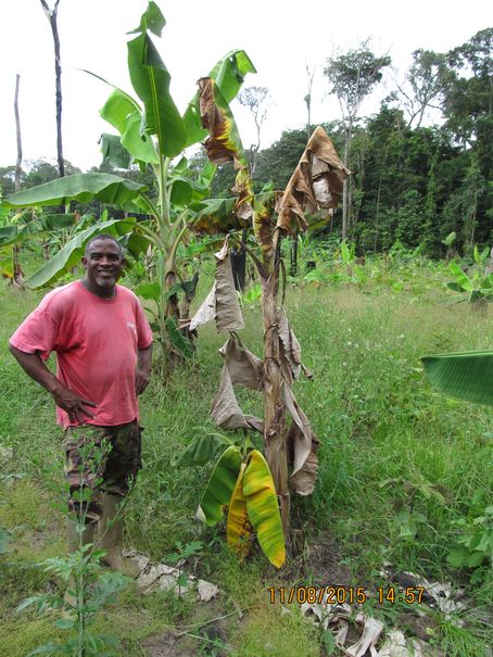 ![]() La progression de la maladie se fait "en taches" sur le terrain. Nous pouvons l'observer sur cette petite zone où tout a disparu ; les jeunes pousses de bananier sont encore présentes noircies. L'analyse biologique de fragments de tige présentant des lignes noircies ne nous a pas été possible, par faute d'équipements. Nous aurions pu tenter de contrôler la présence des bactéries dans le sol, en pratiquant des cultures de tomates sur des échantillons prélevés au pied de plants dépérissants. La pénurie de semis de tomate (plante également sensible à la bactérie Ralstonia n'en pas permis l'initiative. The Causal Agent Moko disease is caused by the bacterium Ralstonia solanacearum (Yabuuchi, Kosako et al. 1995). Initially when it was identified by Rorer in 1911 he named the causal agent Bacillus musae however after the bacterium was shown to cause symptoms on solanaceous plants it was reclassified as B. solanacearum (Ashby 1926). This group has now been renamed Ralstonia solanacearum. The bacterium is described as an aerobic, gram-negative, non-fluorescent rod belonging to the rRNA homology group II (Palleroni 1984). Des mises au point récentes, publiées en français sont sur Parmi les articles de cette revue, La revue Internationale sur Bananiers Plantains. Ralstonia solanacearum en cause retour en haut de la page Kourou , le 9 août 2015 |