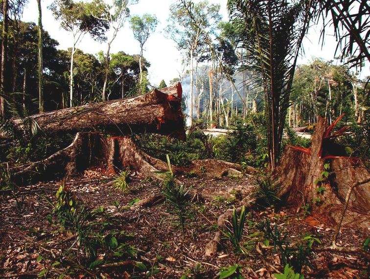 Sur notre parcelle de Papinabo, la forêt a été supprimée selon les procédés traditionnels, abattages des arbres, laissés sur place et plus